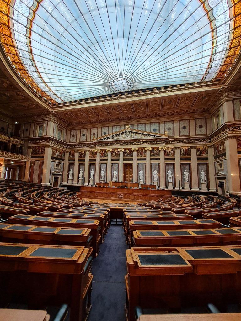 Hier erfuhren die Schülerinnen und Schüler nicht nur einige interessante Informationen über das Gebäude an sich, sondern erhielten auch einen Einblick in die Arbeit als Parlamentarier.